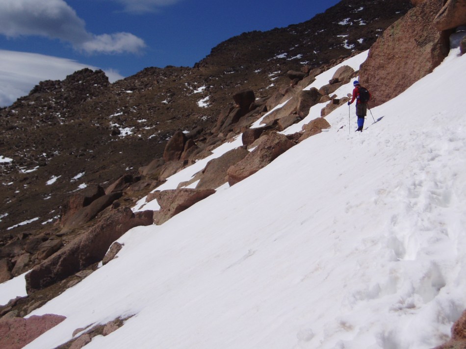 Crispy alpine hardpack at ~3960 m. Photo Credit: Seth McIntosh. Maroon Bells-Snowmass Wilderness, White River NF, CO. 2009.8